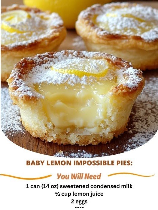 If you love desserts that feel almost magicalâwhere simple ingredients transform into something elegant and irresistibleâBaby Lemon Impossible Pies are about to become your new favorite treat. These little pies are called âimpossibleâ for a reason: you pour one simple batter into the pan, and as they bake, they magically separate into soft layers with a lightly crisp top, a creamy custard-like center, and a delicate base. No crust to roll, no complicated steps, and no stress at all.