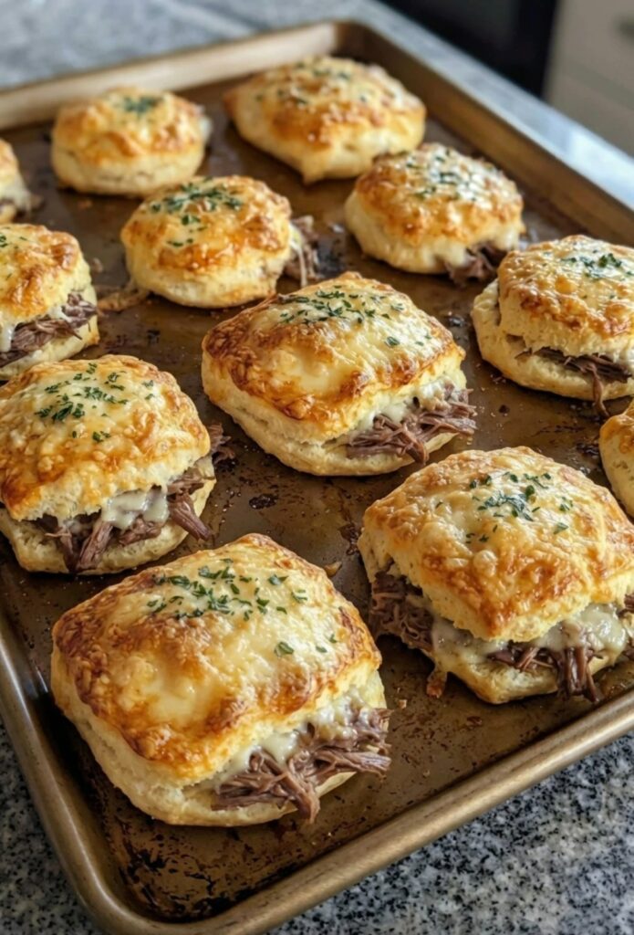 Let me tell you about the dinner that combines two of the best things on earth: fluffy, buttery biscuits and tender, savory French dip sandwiches.