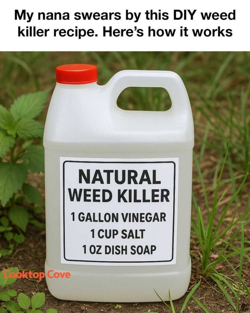 That’s where my Nana came in with her old-school solution : a homemade weed killer made from ingredients already in your kitchen — no fancy chemicals, no toxic sprays, just simple, natural power .